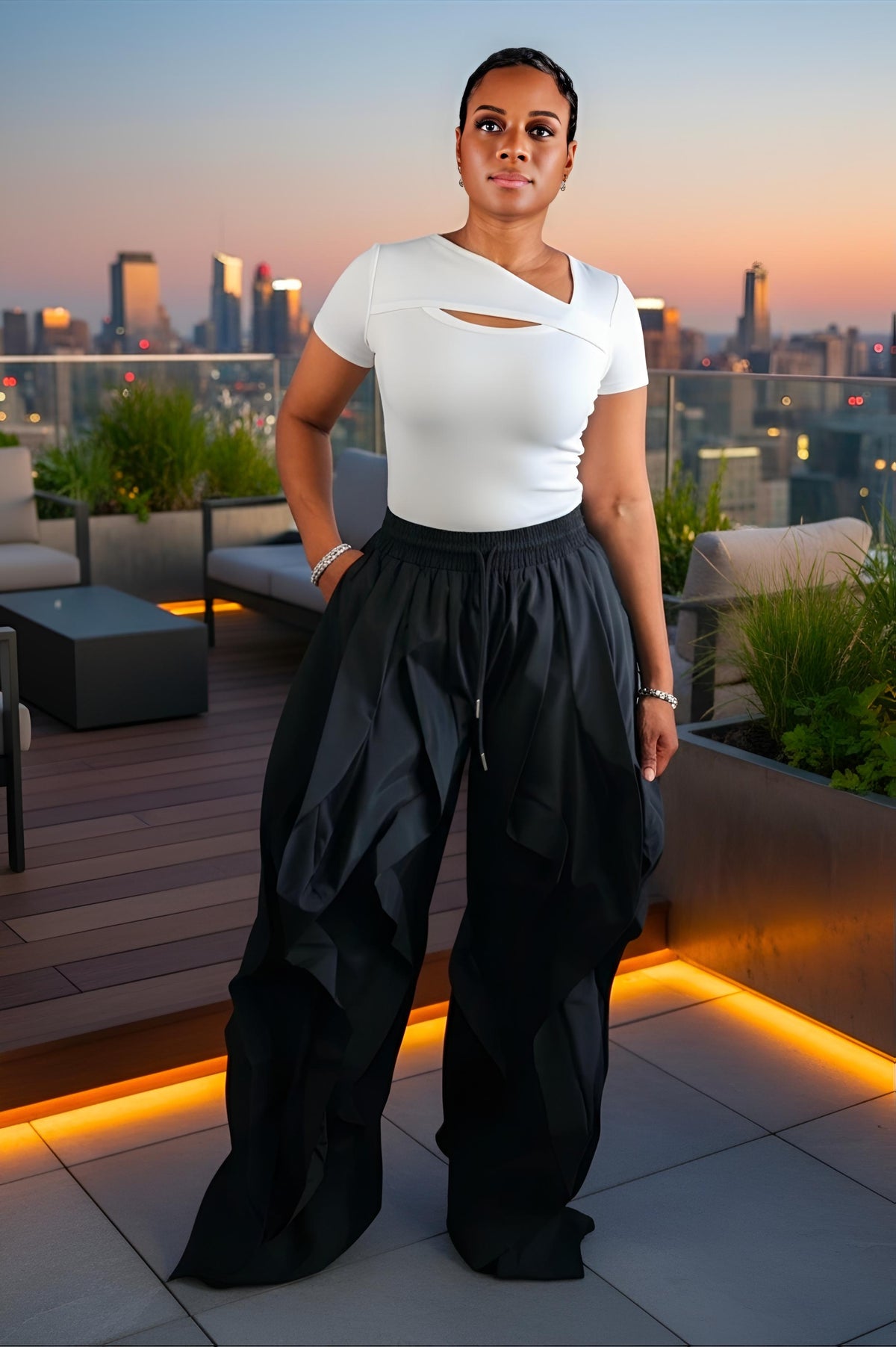 Introducing our STATEMENT FLOW PANTS - the perfect combination of style and comfort. Our oversized joggers feature a trendy wave pattern and a drawstring waist for a customizable fit. Elevate your casual look with these statement-making pants.