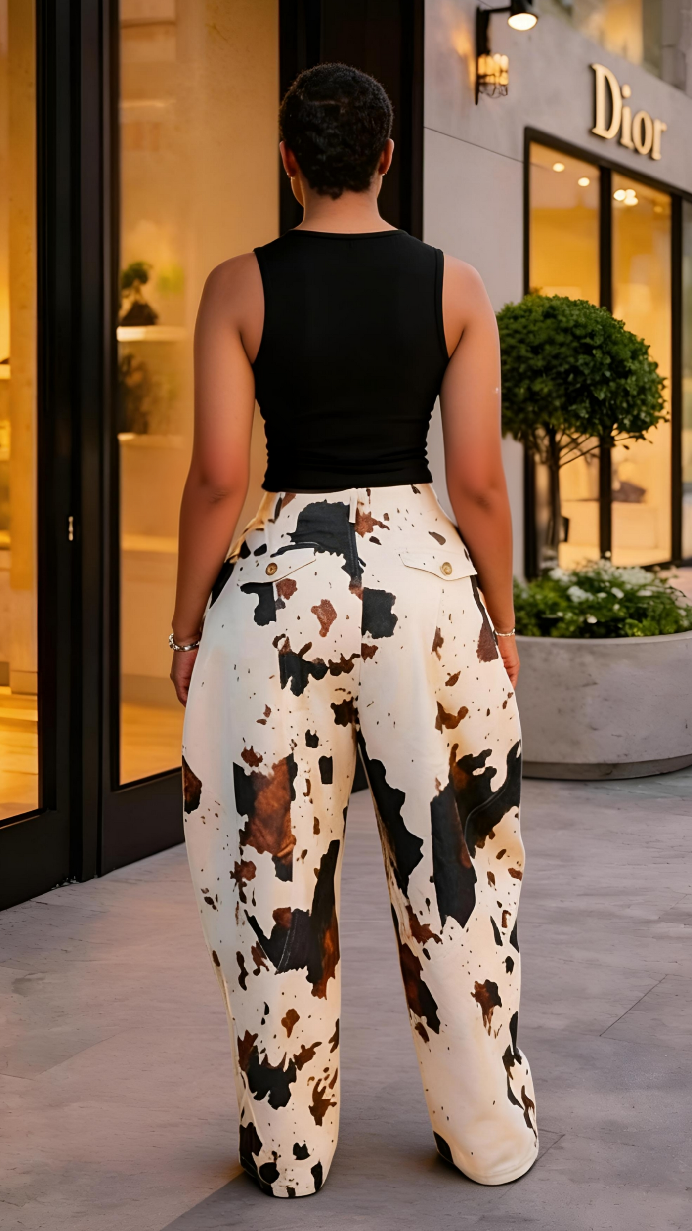 • Wide baggy fit cow print denim Jean