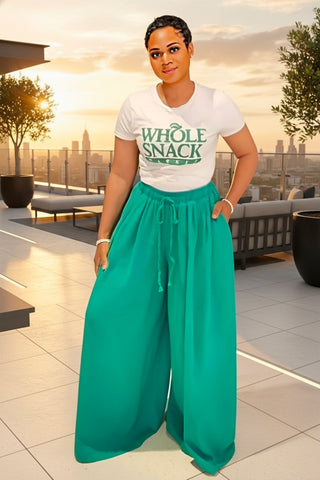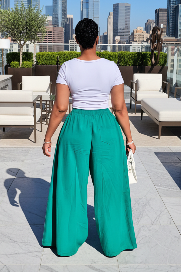 These wide leg denim pants offer an effortless, yet stylish look. They are perfect for casual wear, with a flowy fit that is both comfortable and fashionable. Dress them up or down, for a look you will love all day. Elastic waist and drawstring.