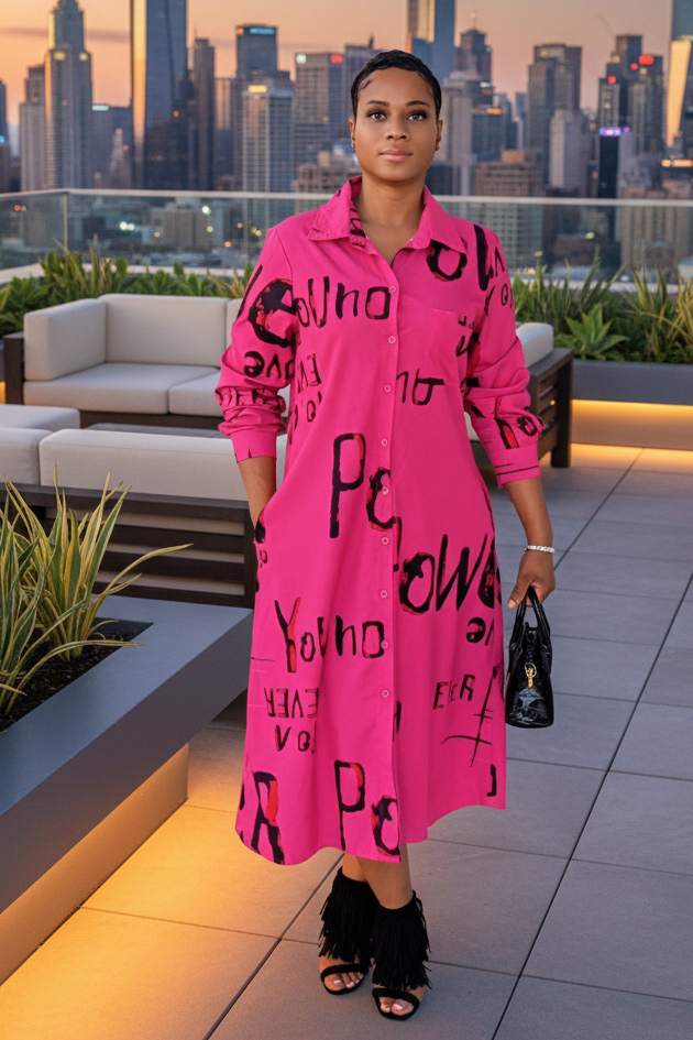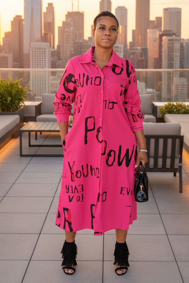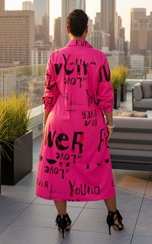 Stay stylish in this BRANDY-SHIRT DRESS. Crafted with a 100% polyester stretch fabric in a vibrant hot pink hue, this dress features a button-down design for a contemporary, yet comfortable look. Perfect for any occasion.