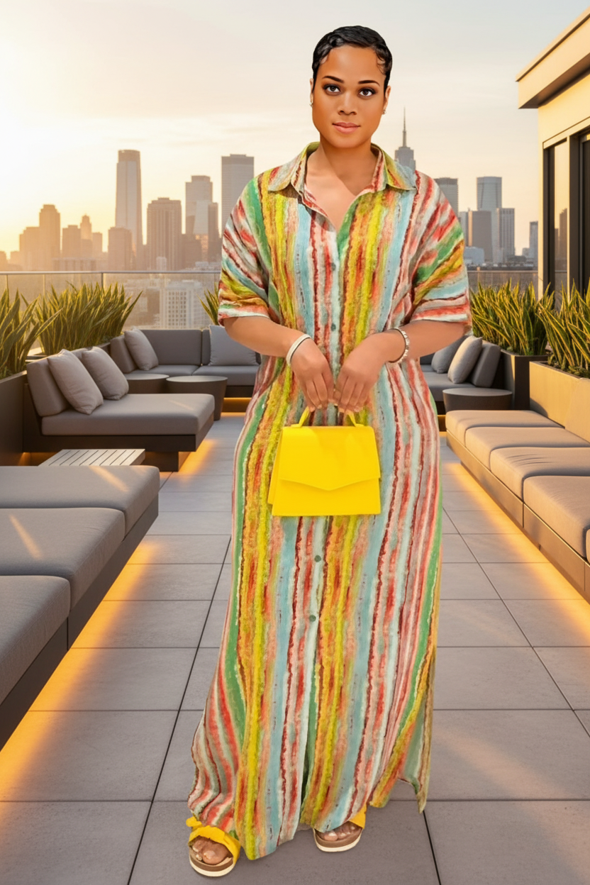 Effortlessly stylish yet comfortable, our Sunset Dress is the perfect addition to your wardrobe. With a relaxed fit and button down design, this dress is perfect for any occasion. Soak in the compliments while enjoying the easy wear and timeless style.