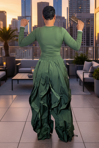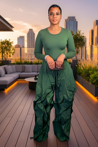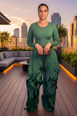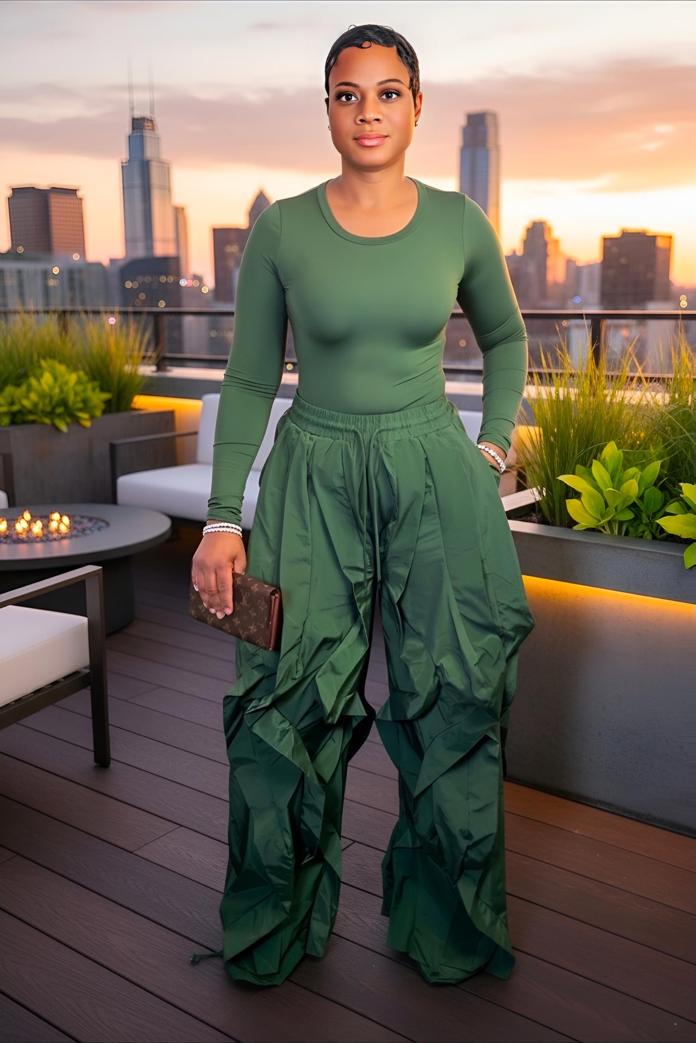 This CLASSIQUE OLIVE pants set features a comfortable bodysuit and relaxed-fit pants made from breathable tracksuit material. Enjoy the sleek, relaxed look and feel of this set while staying cool and comfortable. Perfect for any casual occasion.