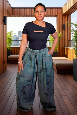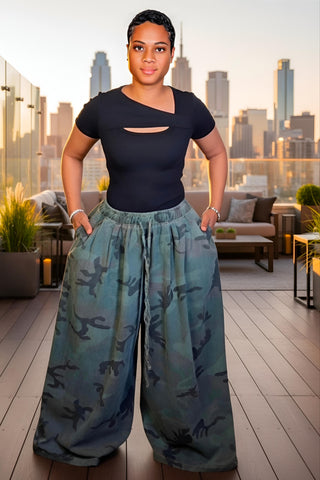 These YASMIN ARMY PANTS are expertly crafted from high-quality denim, making them durable and comfortable for everyday wear. The wide-leg design provides a flattering fit for any body type. Add a touch of sophistication to your wardrobe with these stylish and versatile pants. Oversized fit.